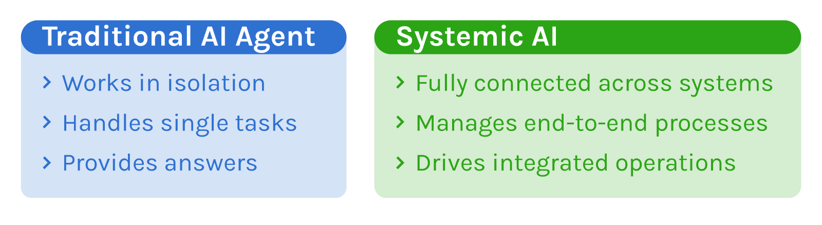 If a standard AI agent is a high-performing specialist working in a silo, Systemic AI is the entire organizational nervous system. Think of Systemic AI as the difference between a single specialized tool and a fully connected factory floor. While the last few years were all about “Surface AI”, such as chatbots and copilots that are able to handle one task at a time, the industry is moving toward something much deeper.