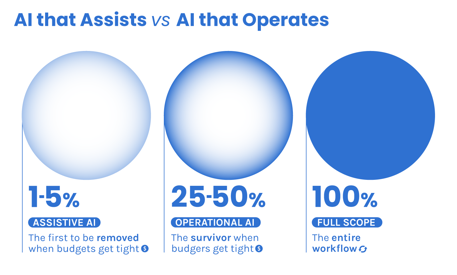 Instead, they are adopting integrated environments where AI is part of the core architecture. When budgets get tight, general-purpose “copilots” that only handle 1% to 5% of a task are the first to be removed. The real survivors will be the platforms that take ownership of 25% to 50% of a specific workflow.